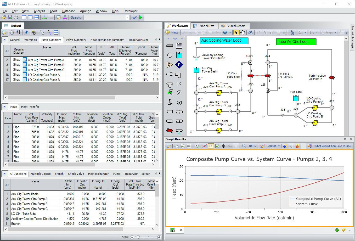 AFT Fathom is a fluid dynamic simulation software for engineers, used to calculate pressure drop and pipe flow distribution in liquid and low-velocity gas piping and ducting systems.