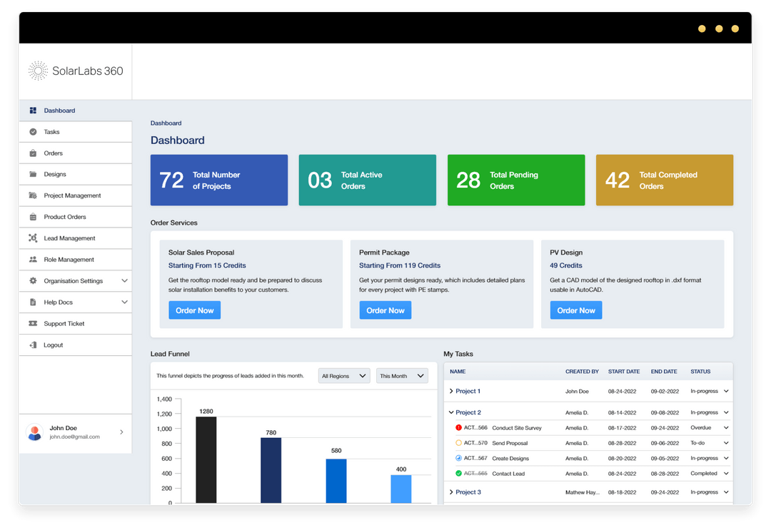 There's no need to wonder what happened to your leads or switch between multiple applications to track them. With SolarLabs360 you have complete lead-to-lifetime tracking, so you will always know the health of your pipeline.