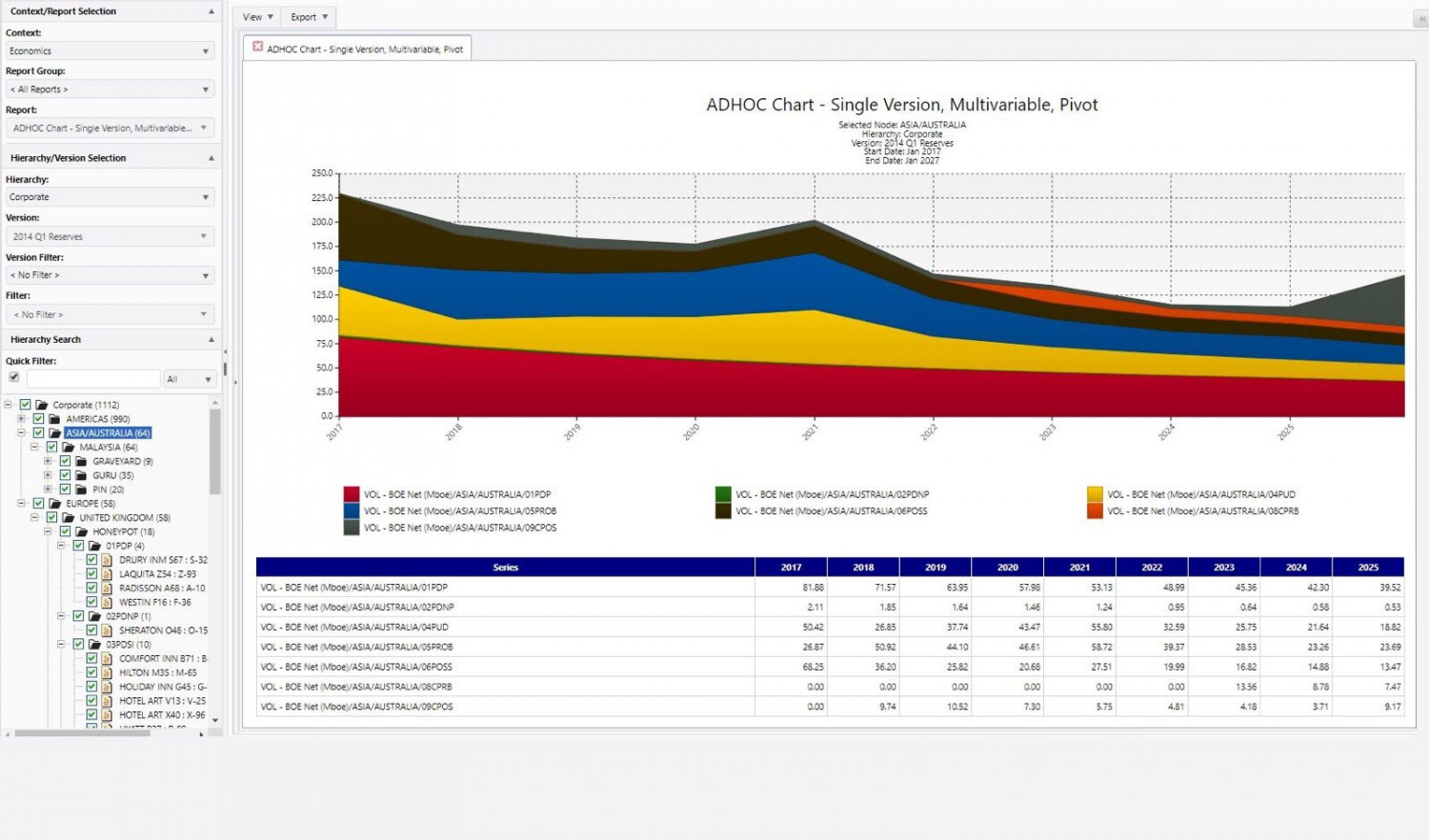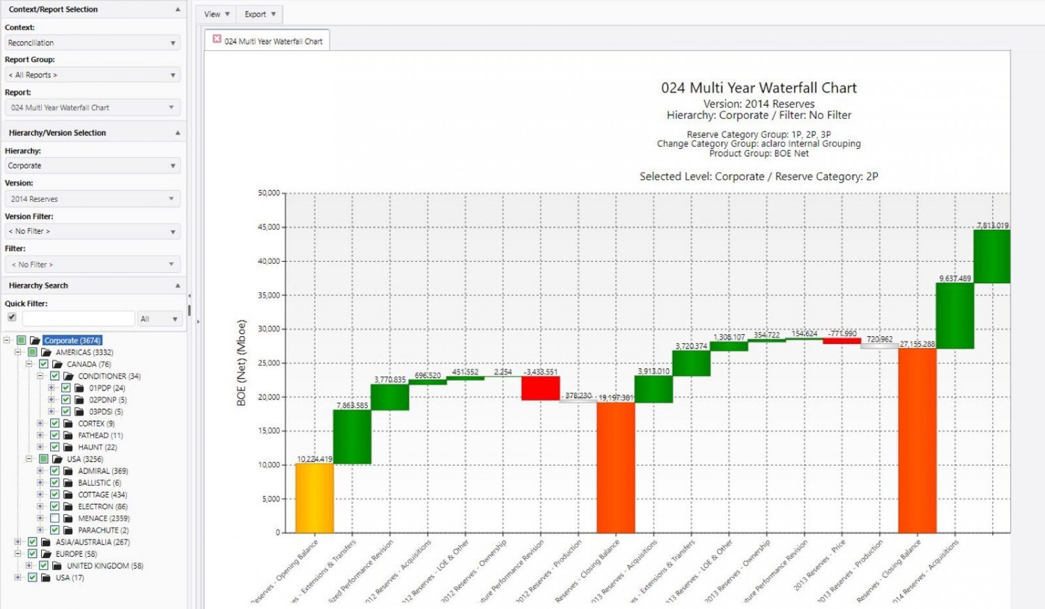 Aucerna Reserves has the flexibility to support all company reporting requirements, internal and external, including government regulatory reporting. It features both a historical Reserves Waterfall and a Future Resource Progression Chart. All data is available for prompt analysis – charts that took hours to produce in spreadsheets can be generated in seconds. Aucerna Reserves includes over ninety standard reports as well as support for 3rd party reporting via OData.