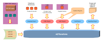 The ADTransform is constructed as a workflow engine with each stage consisting of multiple plug-ins. Each plugin performs a single, discret task, can be used in any stage and can be used as often as required. The configuration of a specific plug-in is tied to the individual occurance in the workflow so the same plug-in can be configured to perform slightly different operations each time.